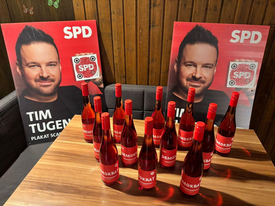 Nach den Redebeiträgen blieb genügend Zeit für persönliche Gespräche in geselliger Atmosphäre. Ein kleines Präsent durfte dabei nicht fehlen: Als Dankeschön erhielt jeder Gast eine Flasche „Demokrat“ vom Schriesheimer Kuhberg – eine passende Wahl für einen politischen Abend.