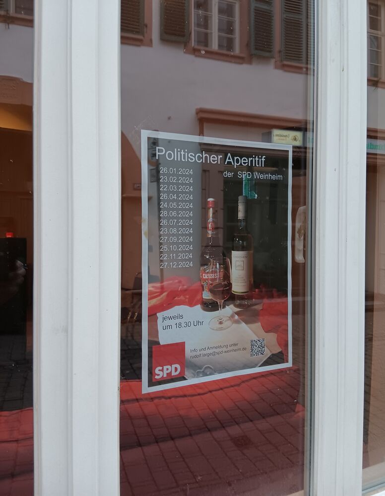 Der Politische Aperitif der SPD-Weinheim geht in ein neues Jahr. Ein spannendes Wahljahr erwartet uns. Die Kommunalwahl am 9. Juni wird den politischen Diskurs um die Lösung der anstehenden Sachprobleme unserer Stadt intensivieren. Wie geht es weiter mit der Parkplatzsituation am Miramar, mit dem Gewerbe, mit der Anschlussunterbringung von geflüchteten Menschen, dem städtebaulichen Rahmenplan? Wie wollen wir die strukturellen Finanzprobleme unserer Stadt lösen? Hinzu kommen Fragen zu den Wahlen selbst. Welche Parteien und Wählervereinigungen werden bei der Gemeinderats- und Kreistagswahl antreten? Welche Personen finden sich neu auf den Listen, welche wird man vermissen? Was steht in den Wahlprogrammen? Und schließlich wird uns die Europawahl daran erinnern, dass die Europäische Union mehr ist als ein einheitlicher Wirtschaftsraum. Doch wie wollen wir die europäische Idee in Weinheim mit Leben erfüllen und welche Rolle spielen die Beziehungen zu unseren Partnerstädten dabei?